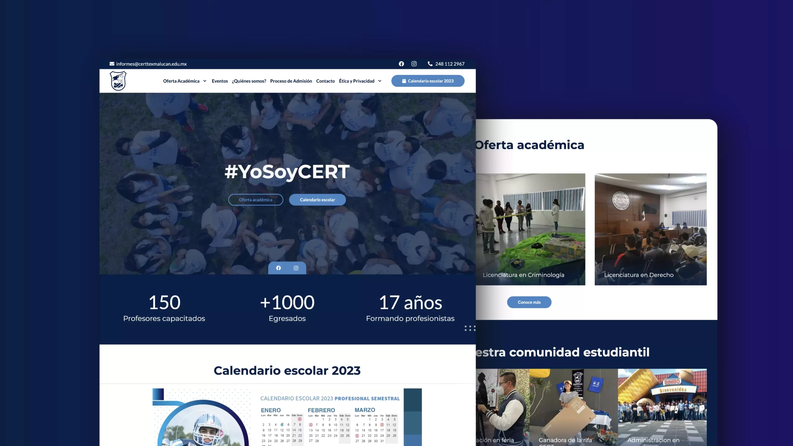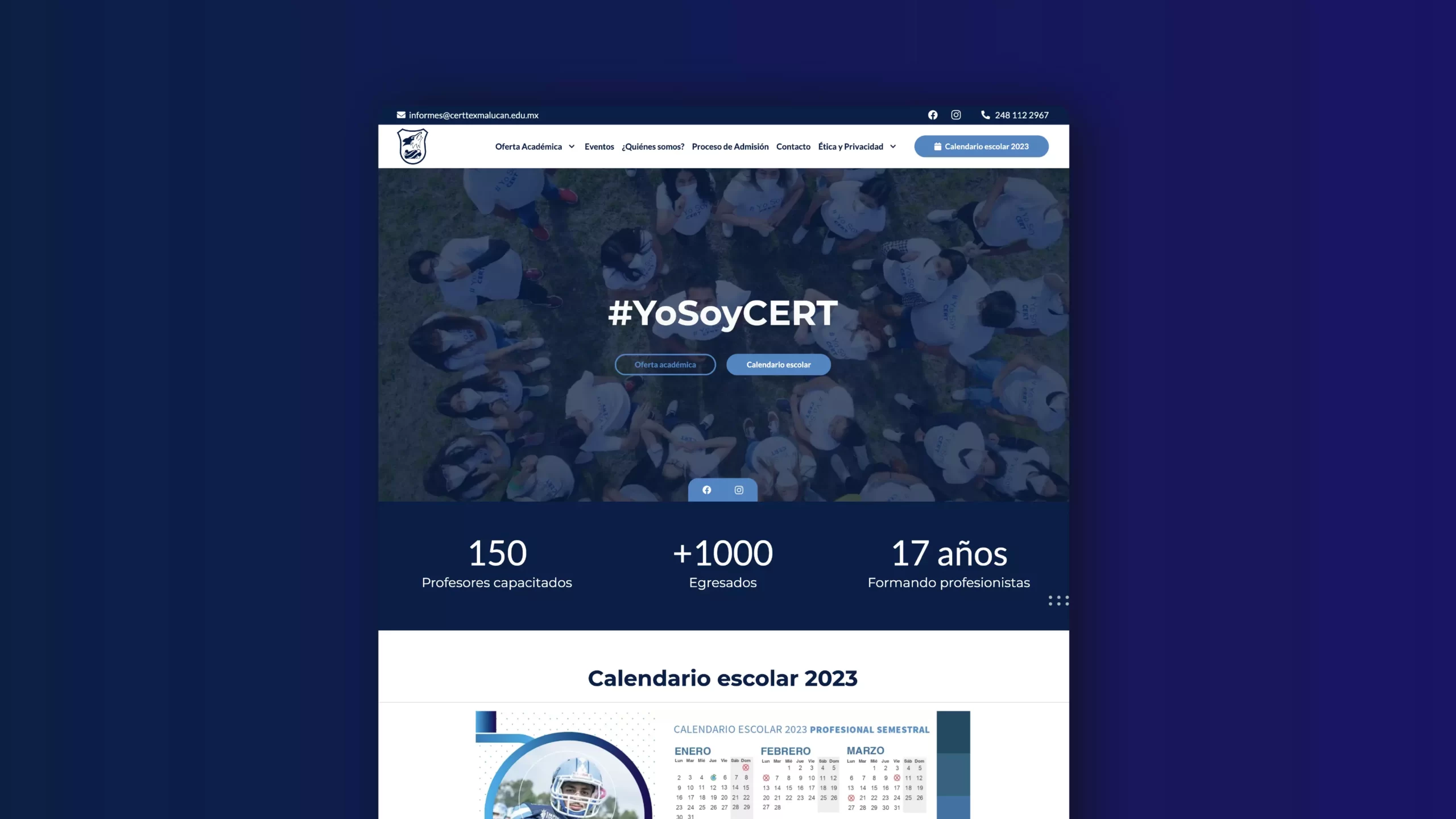 Se creó una página web institucional con base en el lineamiento del centro escolar que fuera amigable con el usuario y con el cliente. Se implementó en WordPress para que el cliente tuviera una forma fácil de subir todos los anuncios necesarios.