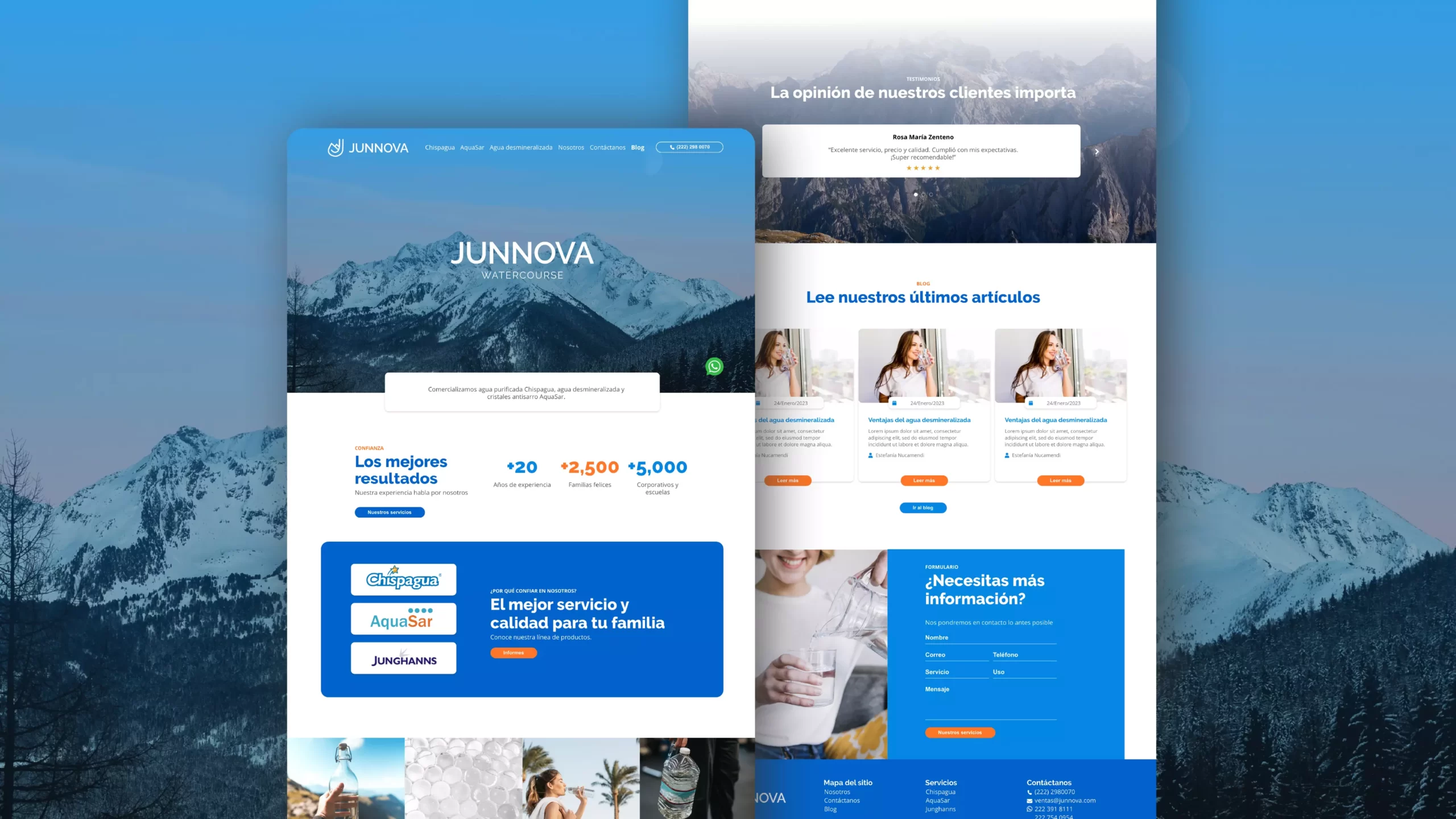 Junnova es una empresa que tiene más de 20 años en el mercado, con un nombre compuesto con los apellidos de los fundadores Jun-ghanns y Rua-nova, es una marca que ofrece el servicio de agua desmineralizada, agua purificada y cristales antisarro.