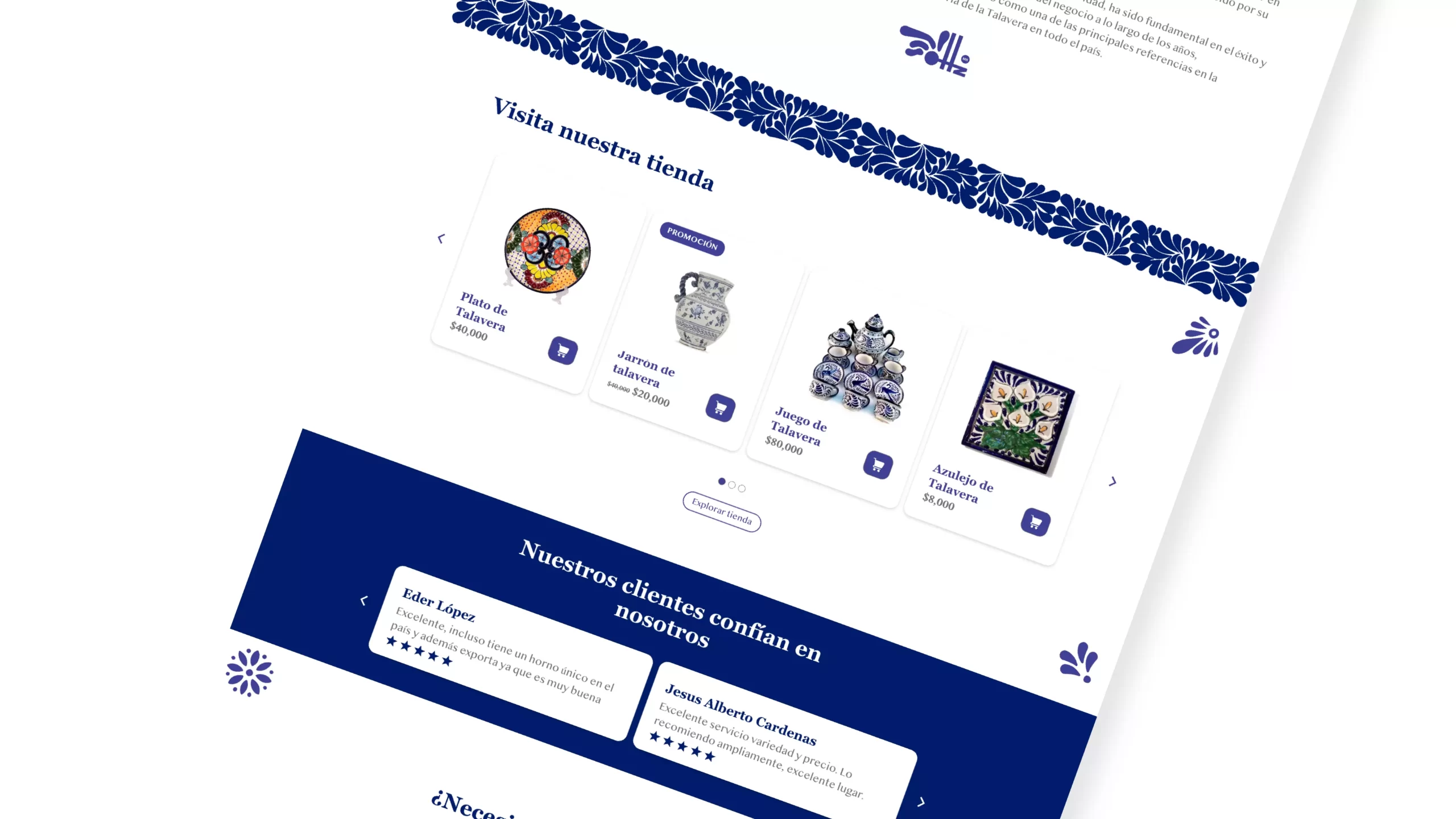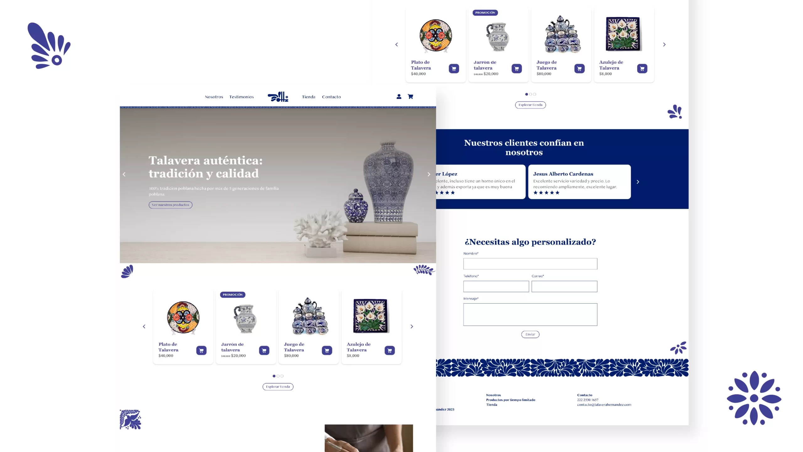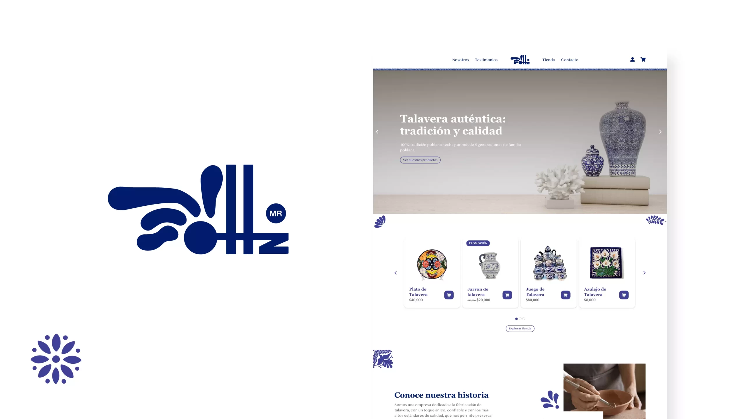 Se creó una ecommerce con diseño elegante y minimalista con elementos amigables para el usuario y tipografías serifas acordes a la línea de marca. Se usaron gráficos de patrones usados típicamente en la talavera poblana para remarcar la esencia.