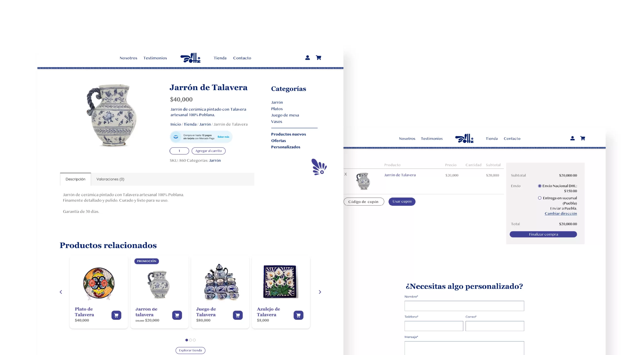 Creación de ecommerce para empresa de Talavera Poblana Artesanal para envíos nacionales.